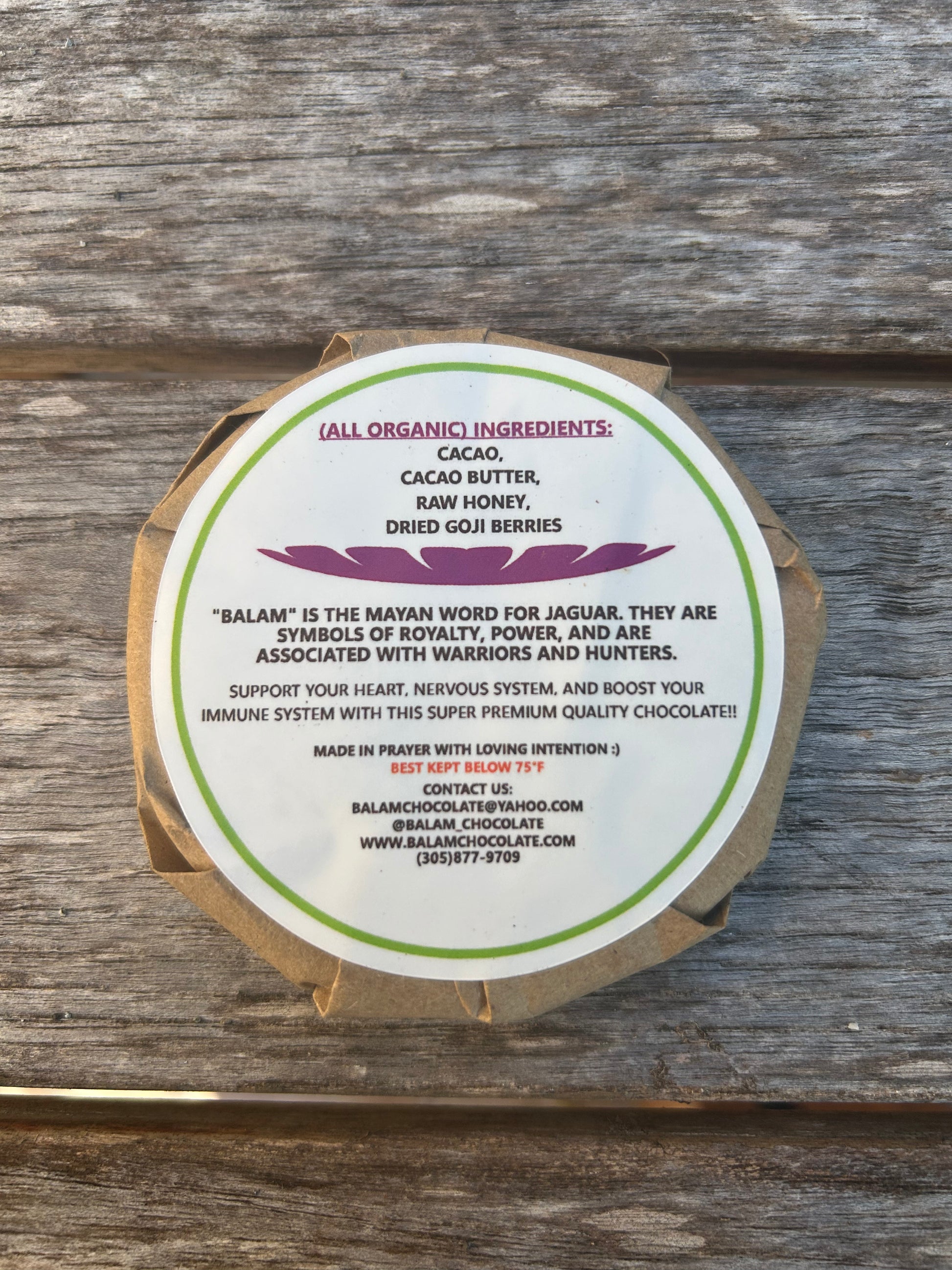 These chocolate disks can be eaten as they are whole, they can be split into 4 and eaten whenever one feels a little sugar craving or needs some good energy, they can be melted in a double broiler and used as hot fudge for fruits, they can also be made into a hot chocolate beverage! Use 1/2 a disk for 8oz or 6oz of warm water (if you prefer it stronger), give it a mix and add some raw honey if you want to sweeten it...I sometimes also like adding cinnamon, cloves, or cayenne pepper :)